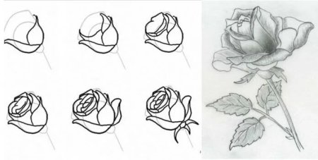 Роза поэтапно карандашом для начинающих