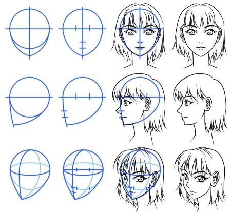 Схема рисования лица аниме