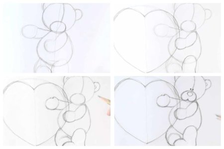 Этапы рисования мишки