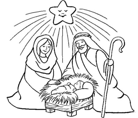 Раскраска Мария Иосиф и Иисус