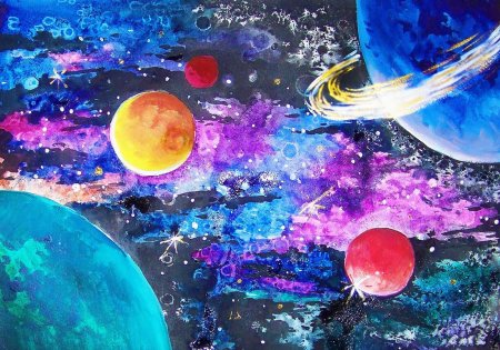 Рисование красками космос