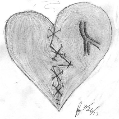Разбито цердцн карандашом