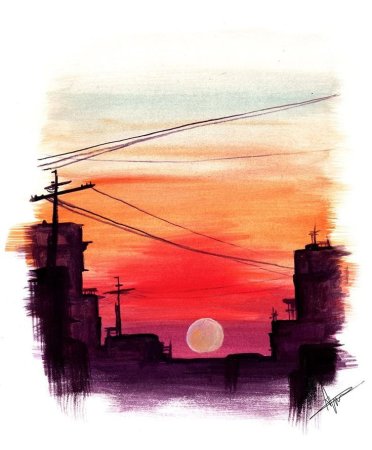 Закат гуашью
