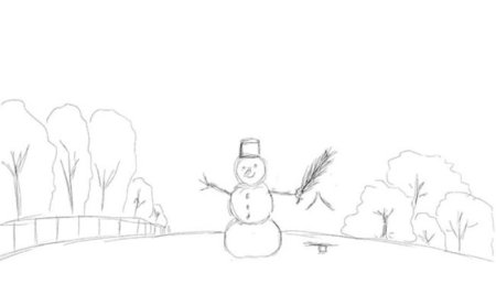 Зимний пейзаж карандашом для детей