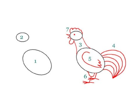 Как нарисовать петуха карандашом поэтапно для детей 5 лет