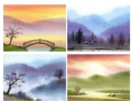 Мини пейзажи акварелью легкие