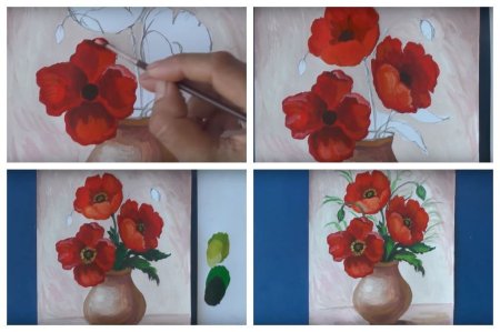 Маки в вазе гуашью