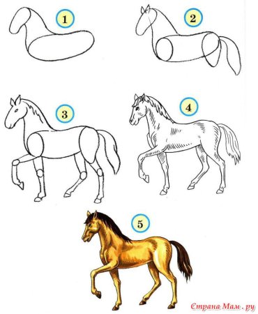 Этапы рисования лошади