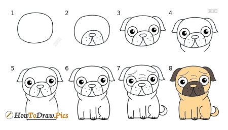 Как нарисовать собаку МОПСА поэтапно