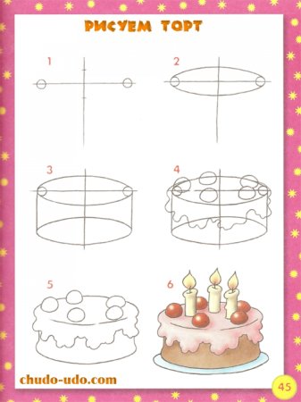 Поэтапное рисование торта для детей