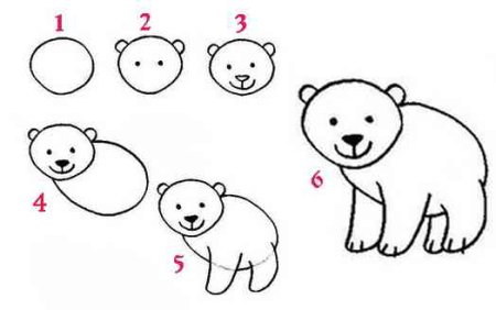 Поэтапное рисование медвежонка