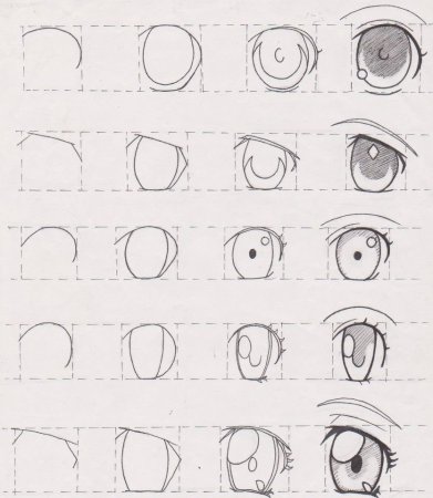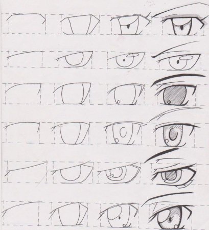 Поэтапное рисование глаз аниме
