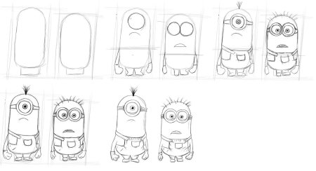 Поэтапное рисование мультяшных героев карандашом