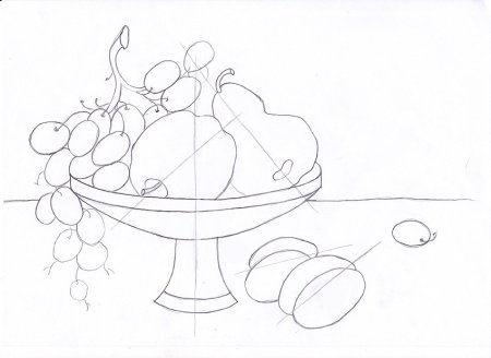 Этапы построения натюрморта карандашом