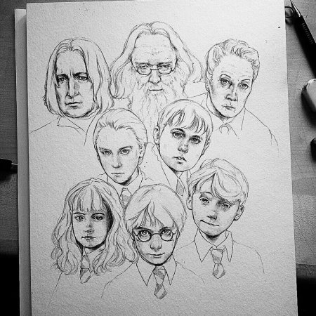 Вдохновляющие рисунки из мира "Гарри Поттера" созданы поэтапно с использованием карандаша. Каждый шаг в процессе создания исследует детали и особенности персонажей, предметов и мест, передавая уникальную атмосферу этого волшебного мира. Легкость и нежность линий придают каждому рисунку особое очарование, позволяя зрителю ощутить магию и увлекательность вселенной "Гарри Поттера".