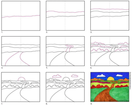 Поэтапное рисование пейзажа для детей