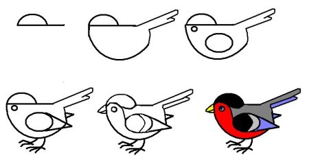 Этапы рисования птицы