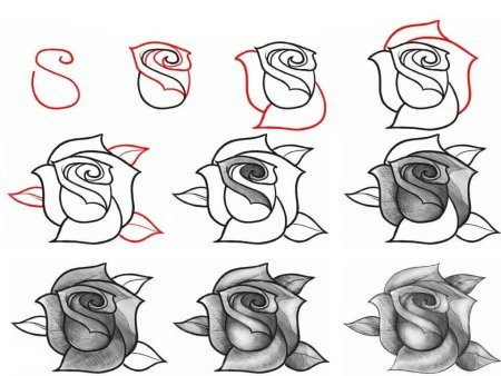 Схема рисования розы карандашом