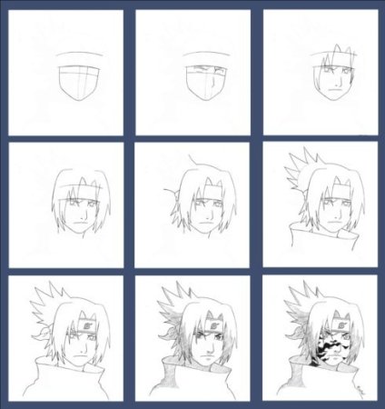 Нарисовать аниме Наруто Саске