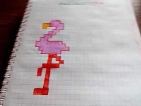 Фламинго по клеточкам в тетради