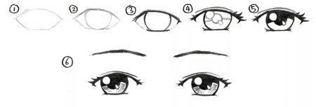 Поэтапное рисование глаз аниме