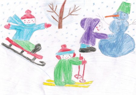 Детские рисунки зимние забавы детей