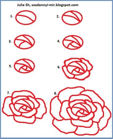 Схема рисования розы для детей