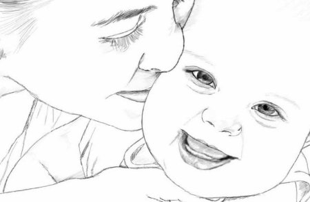 Портрет мамы и ребенка карандашом