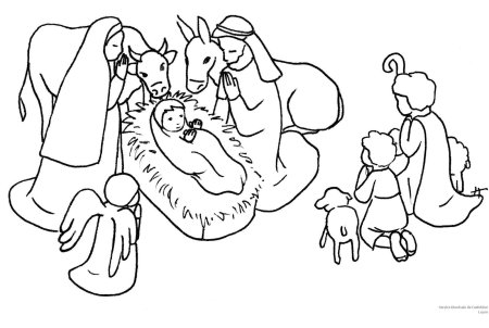 Иосиф и Мария в вертепе раскраска