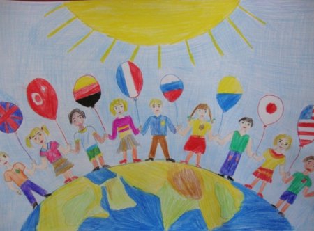 На рисунке изображен яркий и легкий день защиты детей. В центре внимания - дети, они счастливы и безопасны. Радуга символизирует надежду и радость, которые они приносят в мир. Фон наполнен яркими цветами, подчеркивающими радостную атмосферу этого особенного дня. Этот рисунок олицетворяет заботу и защиту детей, а также призывает всех позаботиться о них и создать мир безопасным и справедливым для каждого ребенка.