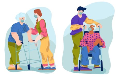 Иллюстрация помогаю пожилым людям