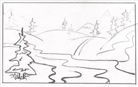 Зимний пейзаж карандашом для детей