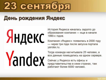 День рождения поисковой системы Яндекс 23 сентября