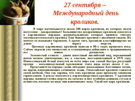Международный день кроликов 27 сентября