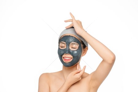 Девушка с грязевой маской на лице