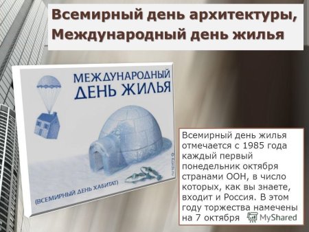 4 Октября Всемирный день Хабитат (Всемирный день жилища)