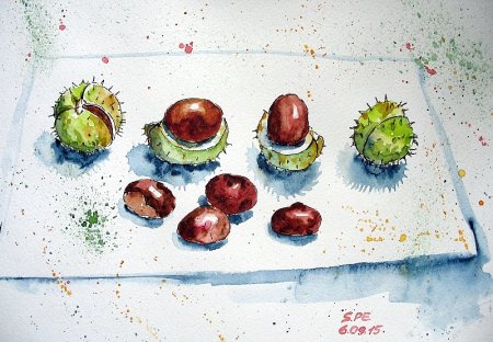 Рисование акварелью каштаны