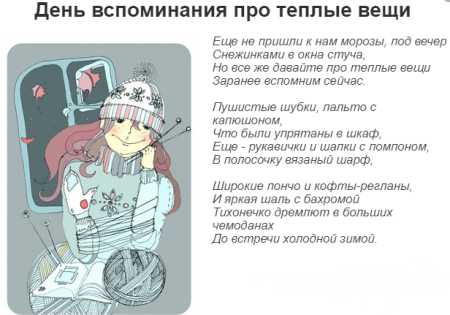 День вспоминания про теплые вещи
