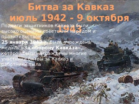 9 Октября день разгрома немецко-фашистских войск в битве за Кавказ