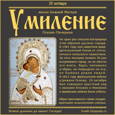Праздник Псково-Печерской иконы Божией матери Умиление 20 октября
