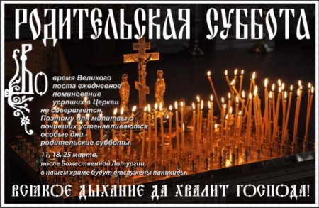 Родительская суббота четвертой седмицы Святой Четыредесятницы