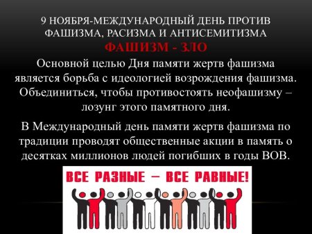 9 Ноября Всемирный день против фашизма расизма и антисемитизма