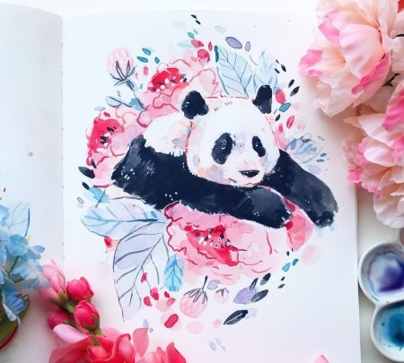 Акварельный скетчинг Панда