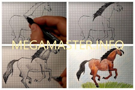 Лошадь по клеточкам в тетради карандашом