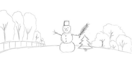 Зимний пейзаж поэтапное рисование карандашом