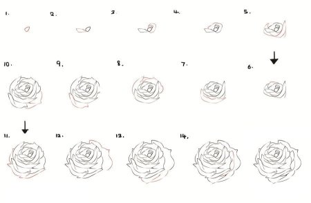 Схема рисования розы карандашом