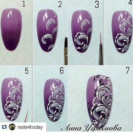 Вензеля на ногтях пошагово