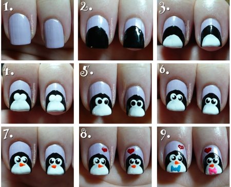 Пингвин на ногтях пошагово