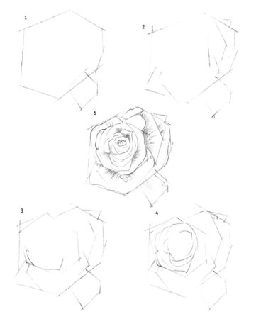 Схема рисования розы карандашом