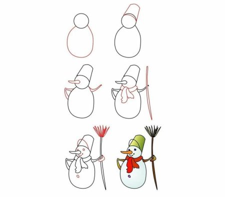 Пошаговое рисование снеговика